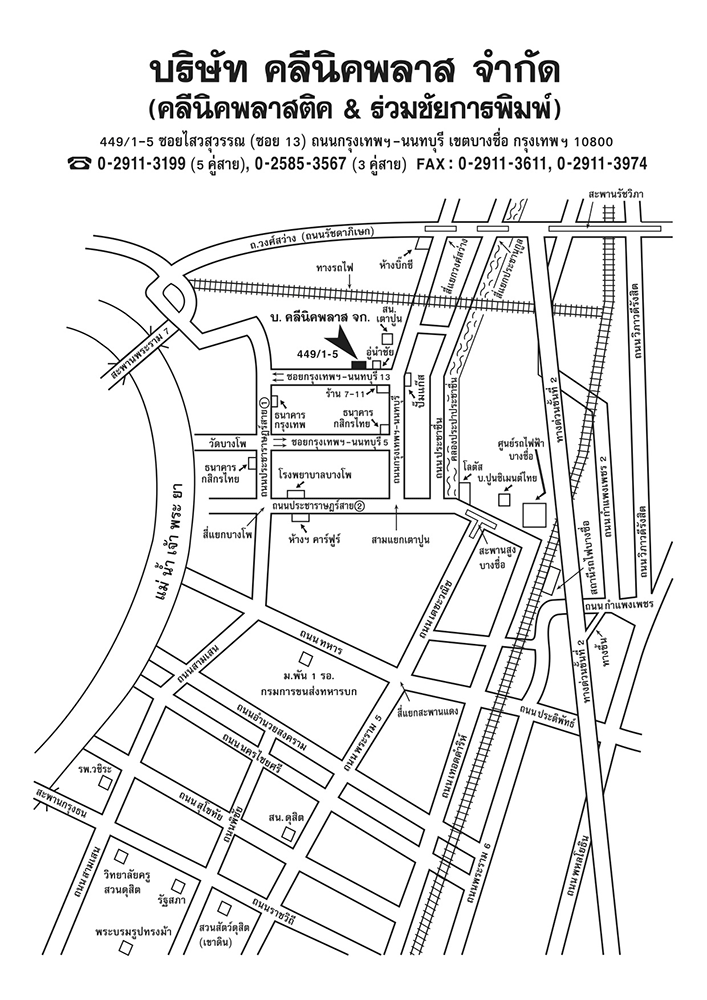 คลีนิคพลาสติค และ ร่วมชัยการพิมพ์: 449/1-4 ซอยกรุงเทพ-นนทบุรี13 ถนนกรุงเทพ-นนทบุรี แขวงบางซื่อ เขตบางซื่อ กรุงเทพฯ