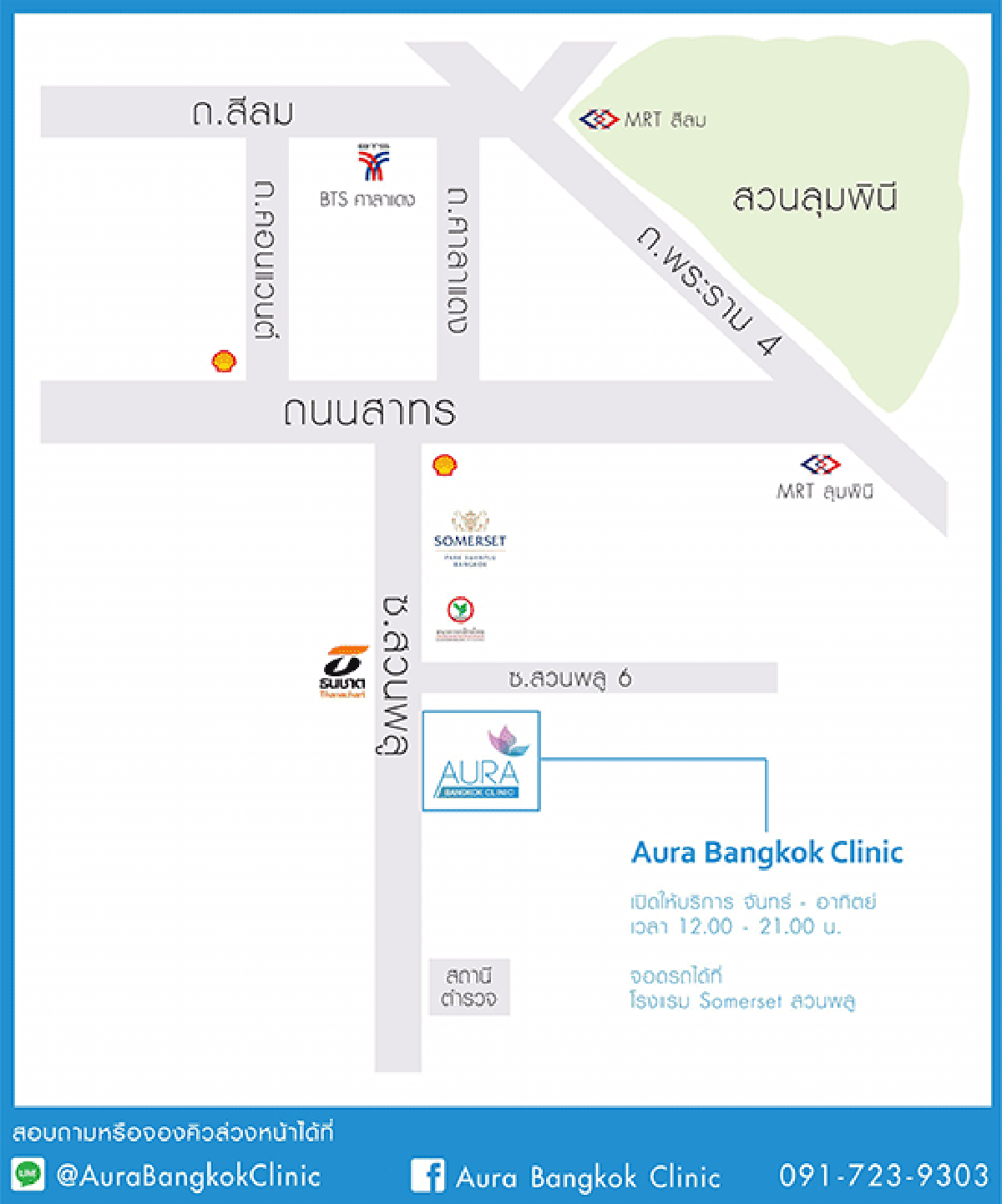Aura Bangkok Clinic สำนักงานใหญ่ (สาธรนครทาวเวอร์ ชั้น 17 BTS ช่องนนทรี)