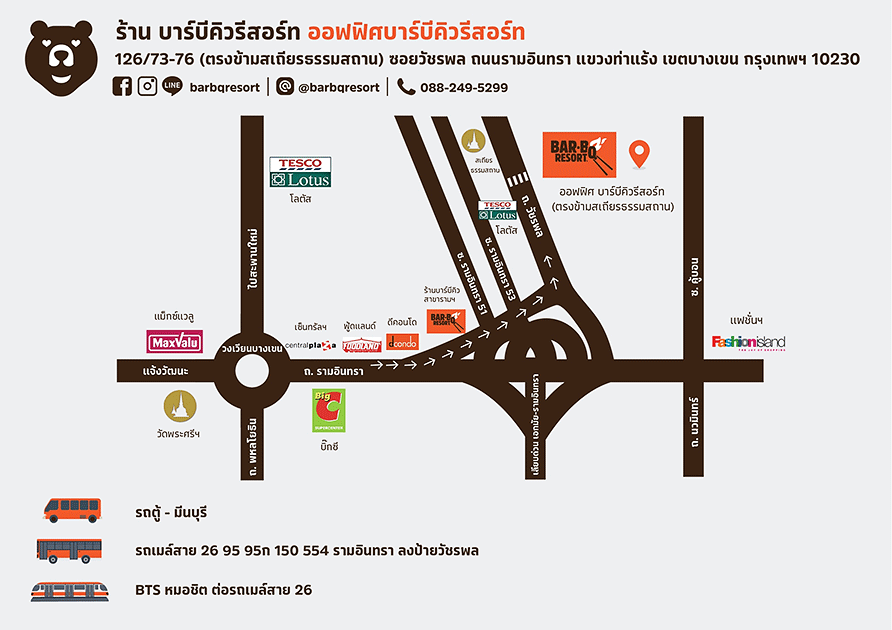 ร้านบาร์บีคิวรีสอร์ท(สาขาที่ยังเปิดรับ ปิ่นเกล้า/รามอินทรา/บางนา/นวนคร/วงศ์สว่าง/ปากเกร็ด/รังสิต)