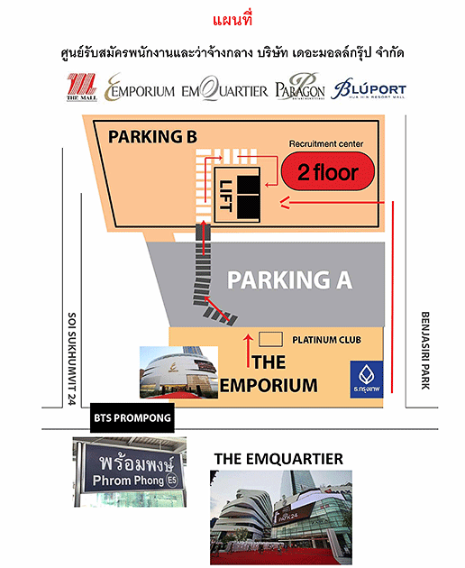สาขาปฏิบัติงาน 1.เดอะมอลล์ รามคำแหง , 2.เดอะมอลล์ ท่าพระ , 3.เดอะมอลล์ งามวงศ์วาน , 4.เดอะมอลล์ บางแค , 5.เดอะมอลล์ บางกะปิ , 6.THE EMPORIUM / THE EMQUARTIER ( BTS พร้อมพงษ์ สุขุมวิท 24 ) , 7.เดอะมอลล์ นครราชสีมา(โคราช) , 8.SIAM PARAGON (พารากอน BTS สยาม) , 9.BLUPORT HUAHIN ( บลูพอร์ต หัวหิน จ.ประจวบคีรีขันธ์ ) , 10.GROUMET MARTKET ( เทอมินอล 21 อโศก , พรอมานาด รามอินทรา , CDC ราชพฤกษ์ , AIRPORTดอนเมือง , MRT ลาดพร้าว ) , ศูนย์กระจายสินค้า(Distribution Center) ตลาดไท รังสิต และ สำนักงานใหญ่