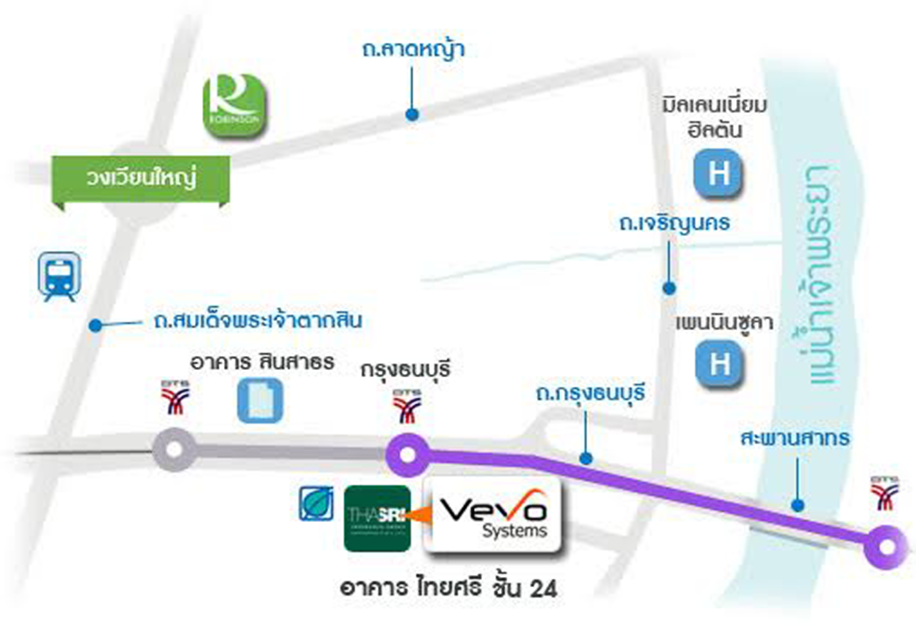 Vevo Systems Co., Ltd. อาคารไทยศรี ประกันภัย ชั้น 24 126/93 ถ. กรุงธนบุรี ( BTS : กรุงธนบุรี ) แขวงบางลำภูล่าง เขตคลองสาน กรุงเทพมหานคร 10600