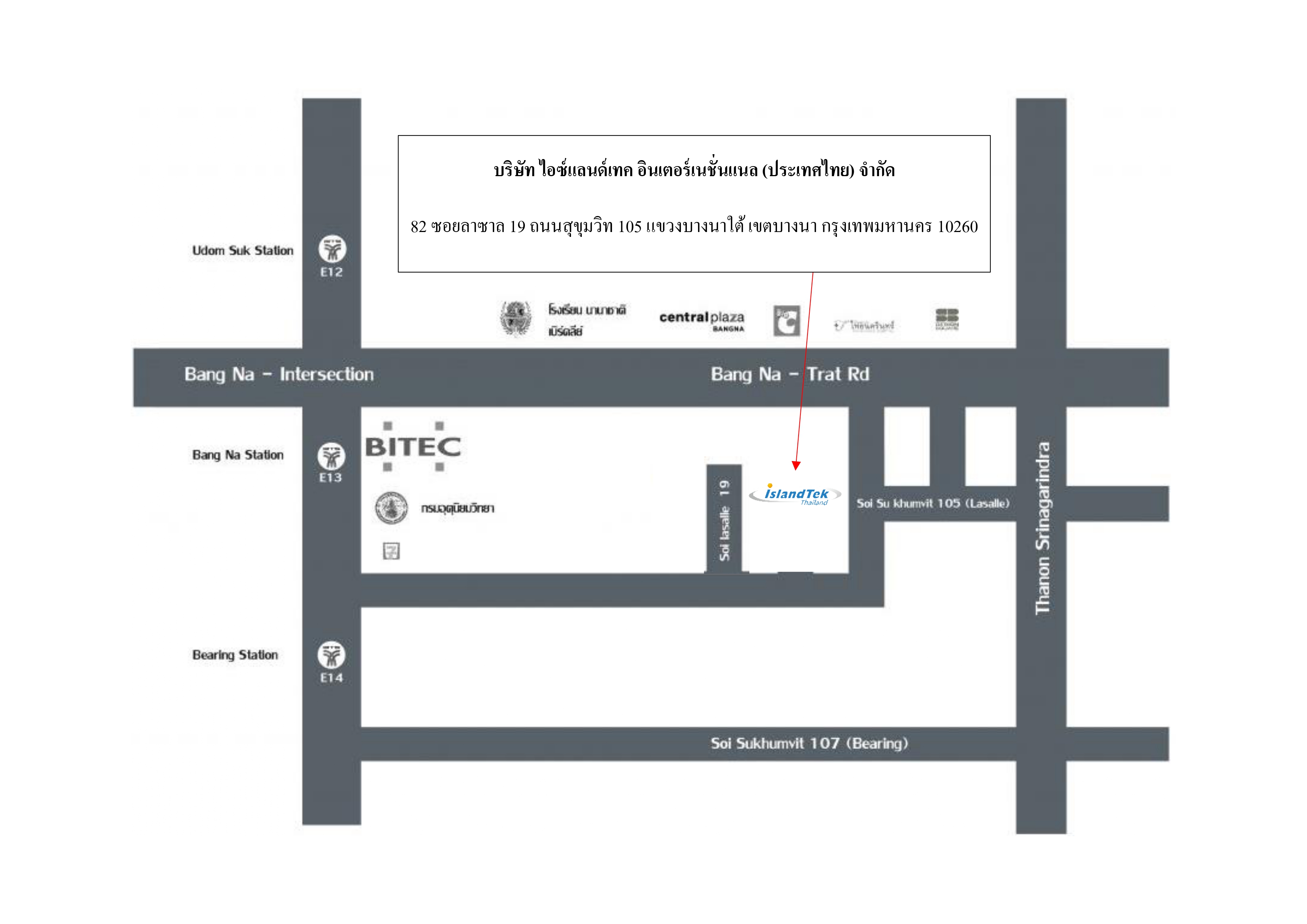 เดินทางด้วยรถไฟฟ้า: อยู่ระหว่าง BTS Bang Na (E13) และ BTS Bearing (E14)